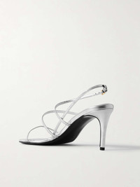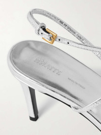 EDITORS'NOTES KHAITE's sandals are named for the way the slim straps elegantly 'Loop' around and cradle your foot. Made from silver crinkled-leather, they have square toes and 75mm heels that offer comfortable lift. SIZE & FIT - Fits true to size, take your normal size - Italian sizing DETAILS & CARE - Heel measures approximately 75mm/ 3 inches - Silver crinkled-leather - Buckle-fastening ankle strap