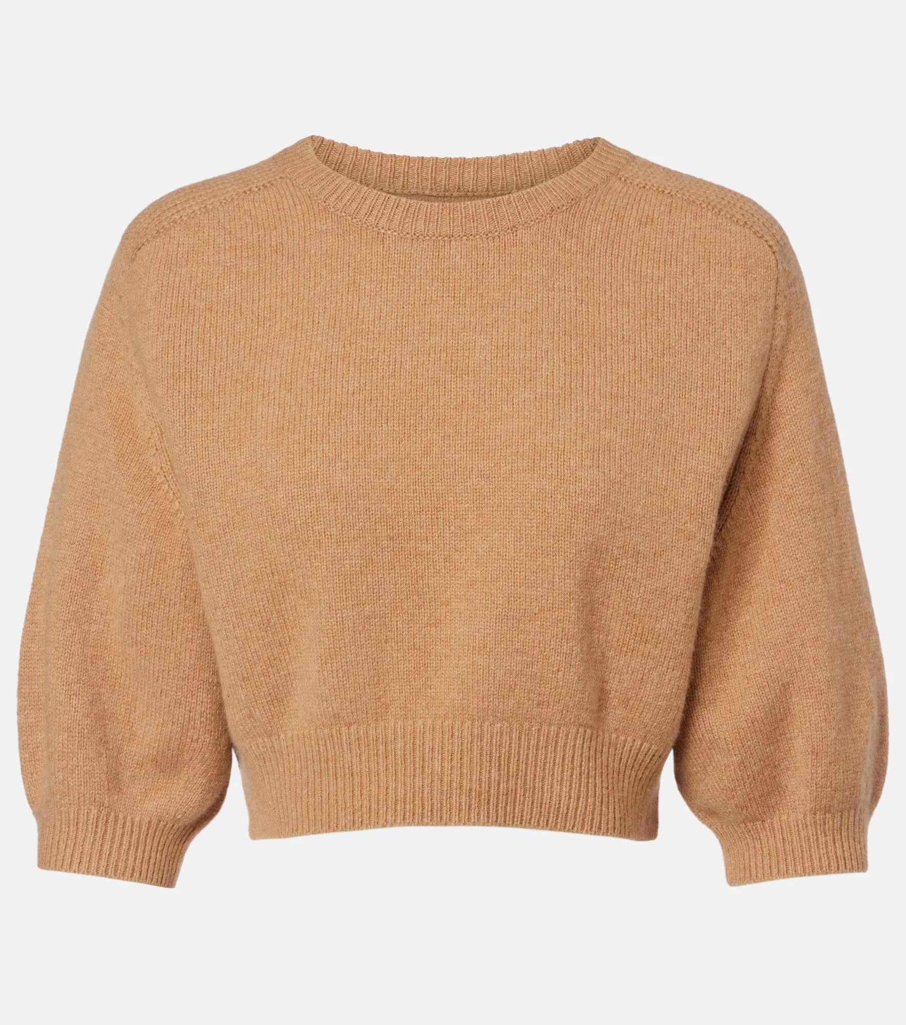 Khaite's minimalist designs exude modern sophistication and effortless elegance. Made in Italy from a soft blend of wool and cashmere, the Lorelai cropped sweater is a classic crewneck style with mid-length sleeves and ribbed-knit trims. Product Details - Material: 65% wool, 35% cashmere - Care instructions: dry clean - Made in Mongolia - Color: brown - Designer color name: Camel - Item color: beige - Cuff: ribbed - Hem: ribbed - Item number: P01145664 Size & Fit - True to size - Designed for a loose fit - Slightly cropped - Height of model is 180cm-71" and wears a size XS