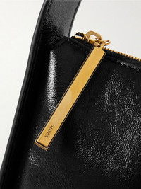 Sleek and timeless, KHAITEs 'Lori' bag is reminiscent of popular styles from the '90s. It's made from glossy black leather with a crinkled finish and sized to fit your phone, a few cosmetics and a pack of mints. The best part is it works perfectly for day or night. Details & Care - Black leather (Calf) - Top handle - Internal card slot - Fully lined - Zip fastening along top