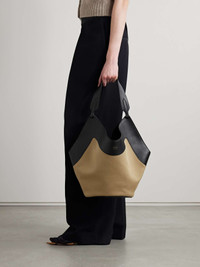 EDITORS'NOTES The unstructured, sculptural shape of KHAITE's 'Lotus' tote is inspired by the fluidity of a scarf. This spacious style has been made in Italy from leather-trimmed canvas and has a round base. The slim top handle fits comfortably over the shoulder, and the interior has enough space for your wallet, makeup pouch and sunglasses case. SIZE & FIT This item’s measurements are: - Handle Drop: 15cm / 5.9in - Height: 34cm / 13.4in - Width: 57cm / 22.4in - Depth: 22cm / 8.7in DETAILS & CARE - Tan canvas, black leather (Calf) - Top handle - Internal detachable pouch - Unlined - Open top - Designer color: Black/ Honey