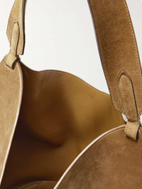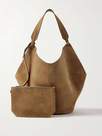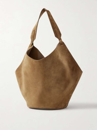 EDITORS'NOTES The unstructured, sculptural shape of KHAITE's 'Lotus' tote is inspired by the fluidity of a scarf. Sized to fit your phone, wallet, water bottle and small compact, this spacious style has been made in Italy from butter-soft suede and left unlined for lightness. It has a round base and slim top handle that fits comfortably over the shoulder. SIZE & FIT This item’s measurements are: - Handle Drop: 20cm / 7.9in - Height: 39cm / 15.4in - Depth: 15cm / 5.9in DETAILS & CARE - Light-brown suede (Calf) - Top handle - Detachable zipped pouch - Leather lining - Open top - Designer color: Mud