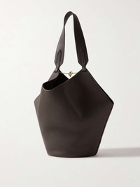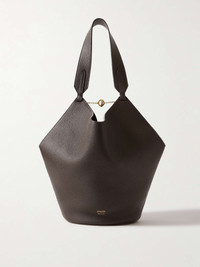 EDITORS'NOTES The unstructured, sculptural shape of KHAITE's 'Lotus' tote is inspired by the fluidity of a scarf. Sized to fit your phone, wallet, water bottle and small compact, this spacious style has been made in Italy from butter-soft textured-leather and left unlined for lightness. It has a round base and slim top handle that fits comfortably over the shoulder. SIZE & FIT This item’s measurements are: - Handle Drop: 25cm / 9.8in - Depth: 18cm / 7.1in - Max. Strap Length: 46cm / 18.1in - Height: 34cm / 13.4in - Width: 45cm / 17.7in DETAILS & CARE - Dark-brown textured-leather (Calf) - Top handle - Detachable zipped pouch - Fully lined - Open top