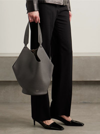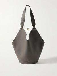 The unstructured, sculptural shape of KHAITE's 'Lotus' tote is inspired by the fluidity of a scarf. It's made from textured-leather and has a round base and slim top handle that fits comfortably over the shoulder. There's enough space for your phone, wallet, sunglasses and small compact. Details & Care - Anthracite textured-leather (Calf) - Top handle - Suede lining - T-bar fastening at open top - Designer color: Elephant