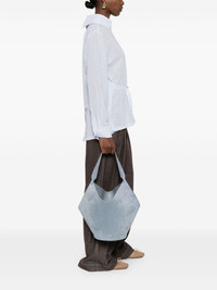 small Lotus tote bag Highlights - Blue - Single top handle - Open top - Lobster claw fastening - Main compartment Made in Italy Composition Lining: Calf Leather 100% Outer: Suede 100% SIZE & FIT Model measurements Height 5 ft 10 in(1.78 m) Bust/Chest 31.49 in(80 cm) Hips 37 in(94 cm) Waist 23.62 in(60 cm) Measurement DEPTH 6.69 in(17 cm) HEIGHT 10.62 in(27 cm) WIDTH 14.17 in(36 cm)