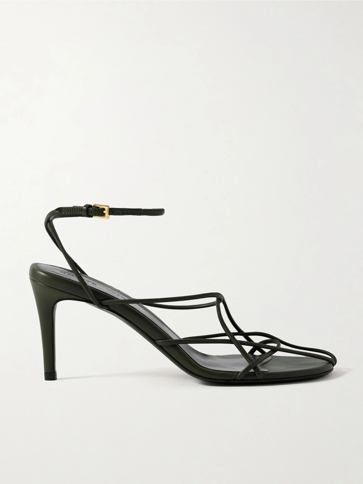 KHAITE's 'Loulou' sandals reflect Catherine Holstein's architectural influences and eye for minimalism. They're made from leather with pin-thin straps that artfully frame the foot and rest on 75mm heels. Size & Fit - Fits true to size, take your normal size - Italian sizing Details & Care - Heel measures approximately 75mm/ 3 inches - Army-green leather (Lamb) - Buckle-fastening ankle strap