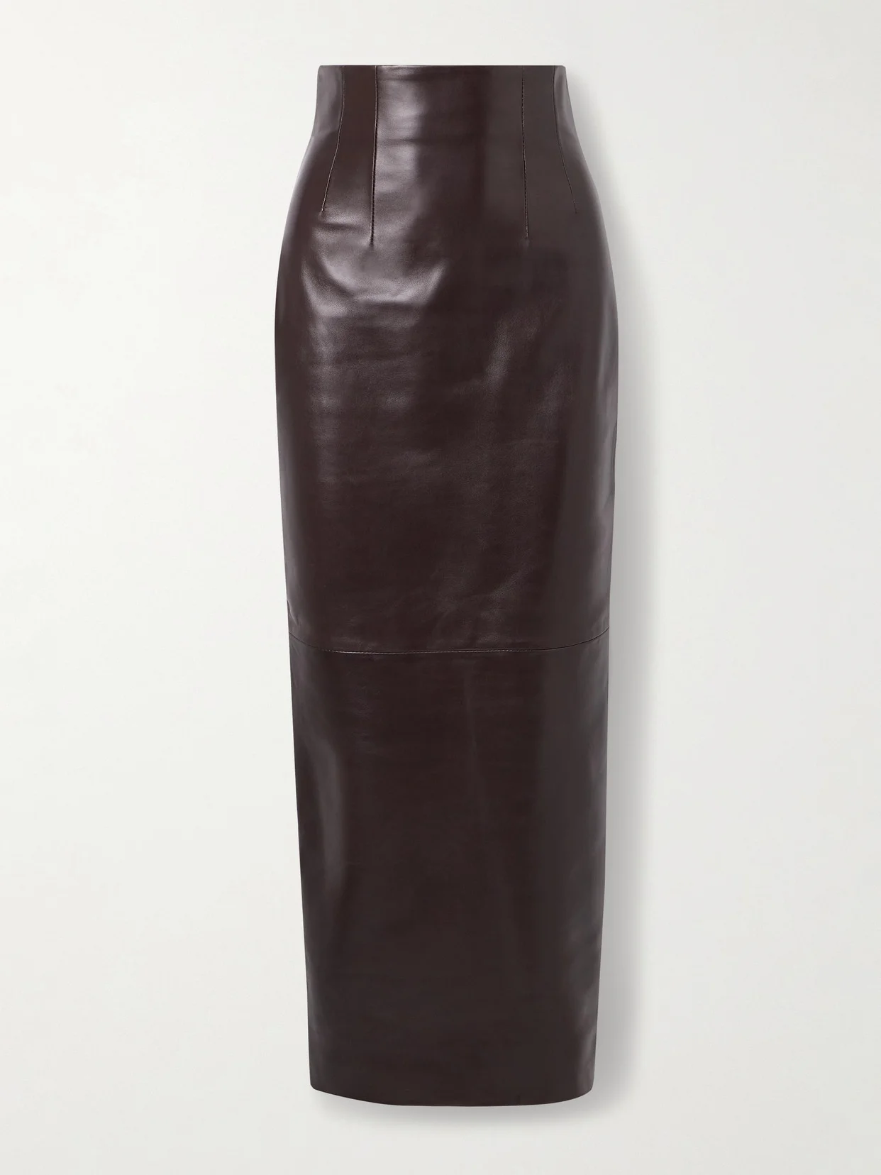 KHAITE's 'Loxley' skirt feels so refined thanks to its minimal column silhouette. As seen on the runways, this leather version has a darted waist and falls to an ankle-grazing hem that's split along the back. The smoothing crepe de chine lining stops it from clinging.