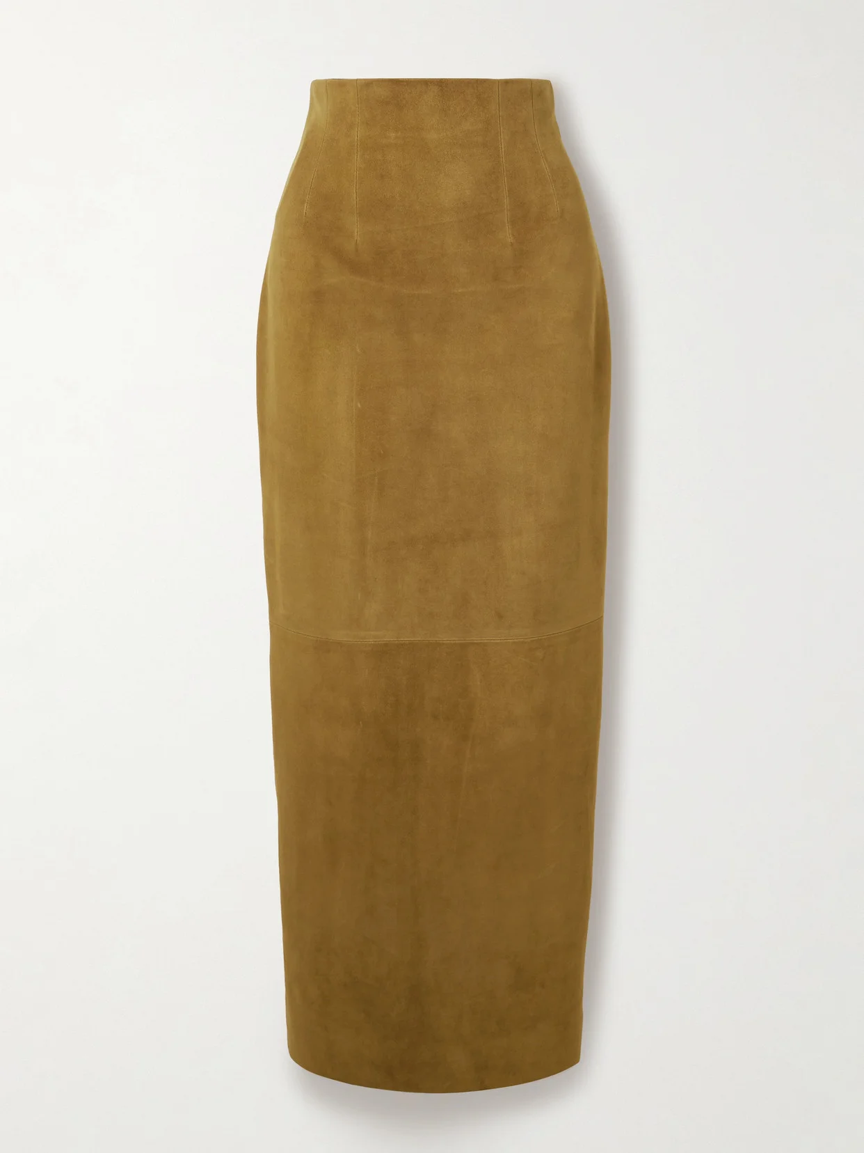 KHAITE's 'Loxley' skirt feels so refined thanks to its minimal column silhouette. This suede version has a darted waist and falls to an ankle-grazing hem that's split along the back. The smoothing satin-twill lining stops it from clinging.