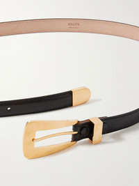 KHAITE's 'Lucca' belt is defined by an oversized geometric buckle – match your jewelry to its polished gold-tone. It's made from black leather and has a slim shape that threads nicely through the loops of any pants. Size & Fit - PS/S = sizes 70-80 - M/L = sizes 80-90 - Designed to be worn on the waist - Measurements can be found in the link below Details & Care - Black leather (Calf) - Buckle fastening