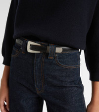 Khaite's minimalist designs exude modern sophistication and effortless elegance. The Lucca belt is crafted in Italy from leather, and the slim silhouette is complete with an adjustable silver-toned buckle. Product Details - Material: calf leather - Lining: calf leather - Made in Italy - Color: black - Designer color name: Black - Item color: black - Hardware color: silver - Item number: P01120452 Size & Fit - Width 2cm-1" - Buckle width 4,2cm-1.5"