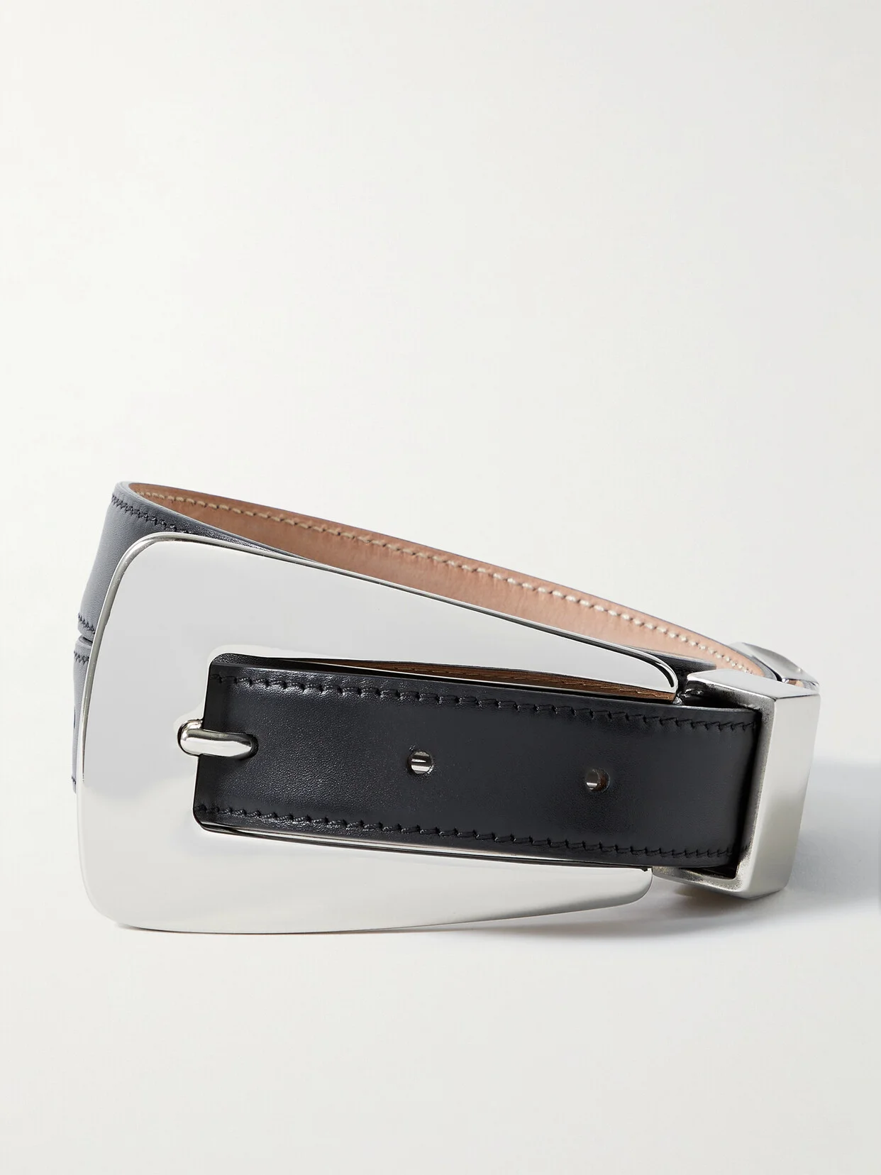Khaite's 'Lucca' belt is defined by an oversized geometric buckle - match your jewelry to its polished silver-tone. It's made from black leather with a smooth suede reverse and has a slim shape that threads nicely through the loops of any pants.