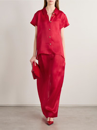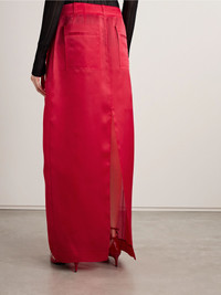 KHAITE experiments with fabric for Spring '25, and this 'Lucian' skirt comes in a silk-organza that appeared more than once on the runway. It has wide pleats on the waistband, a generous back split and a slightly curved silhouette. Style yours with one of the brand's blouses in the same color and a pair of pumps. Size & Fit - Fits true to size, take your normal size - Maxi-length, designed to be worn at the hip - Lightweight, semi-sheer, non-stretchy fabric - Model is 180cm/ 5'11" and is wearing a US 4 Model measurements: - Bust: 79cm/ 31” - Waist: 61cm/ 24” - Hip: 89cm/ 35” Details & Care - Red silk-organza - Button and concealed zip fastening at front - 100% silk; button: 100% horn (Buffalo) - Designer color: Raspberry