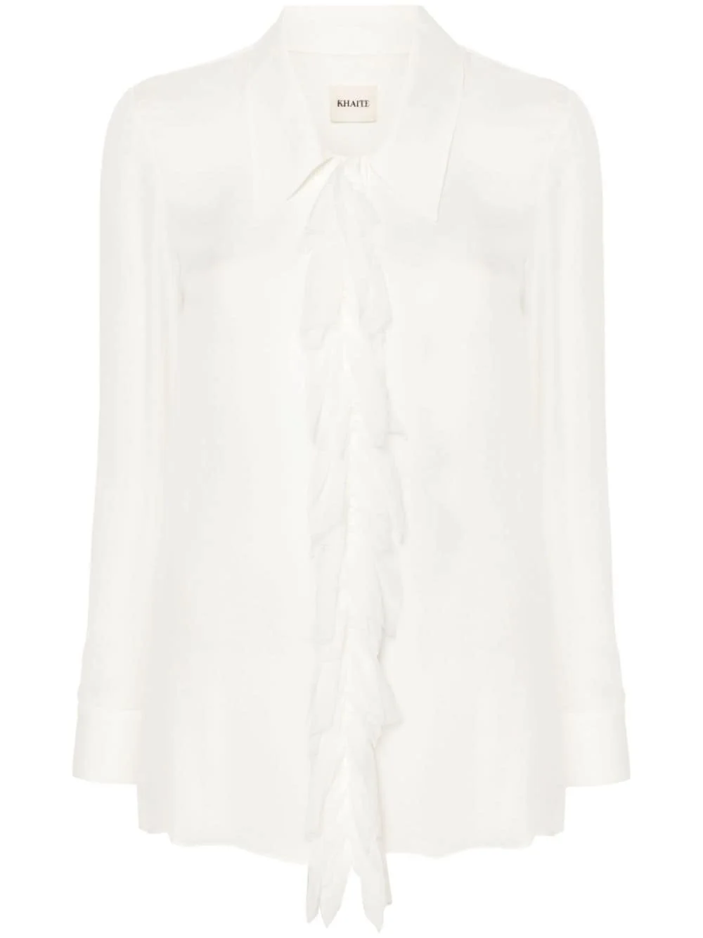 Luka shirt Highlights - Ivory white - Silk - Georgette - Pointed flat collar - Long sleeves - Buttoned-cuff sleeves - Ruffled detailing - Straight hem - Front button fastening Made in Italy Composition Silk 100% SIZE & FIT Model measurements Height 5 ft 9 in(1.75 m) Bust/Chest 31.88 in(81 cm) Hips 34.64 in(88 cm) Waist 24.01 in(61 cm) FittingInformation Designed for a relaxed fit, this piece allows for comfort and movement when worn Made from a midweight non-stretch fabric This piece fits true to size – take your usual size