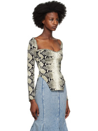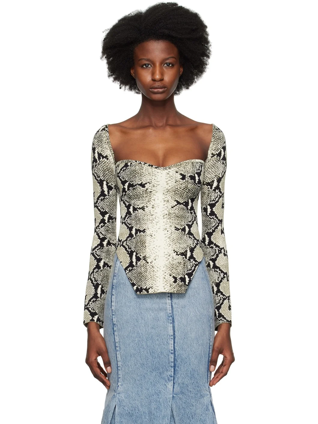 Rib knit viscose- and polyester-blend T-shirt. Graphic pattern printed throughout. · Sweetheart neck · Asymmetric hem · Vented side seams Supplier color: Roccia