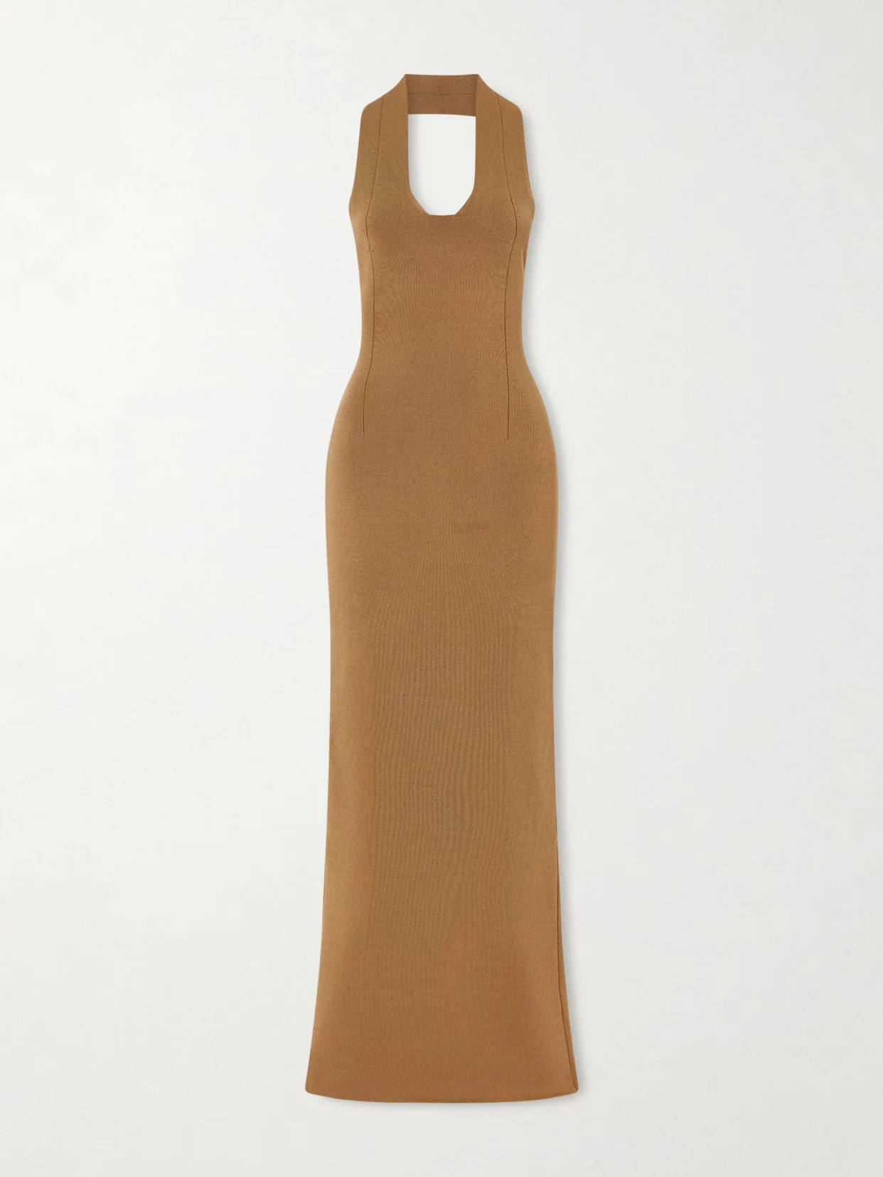 KHAITE's 'Mahi' dress is understated but eye-catching. Knitted for a close fit, it has halterneck straps that lead to a plunging neckline and low, open back. Wear yours with heels to add height to the maxi hem.