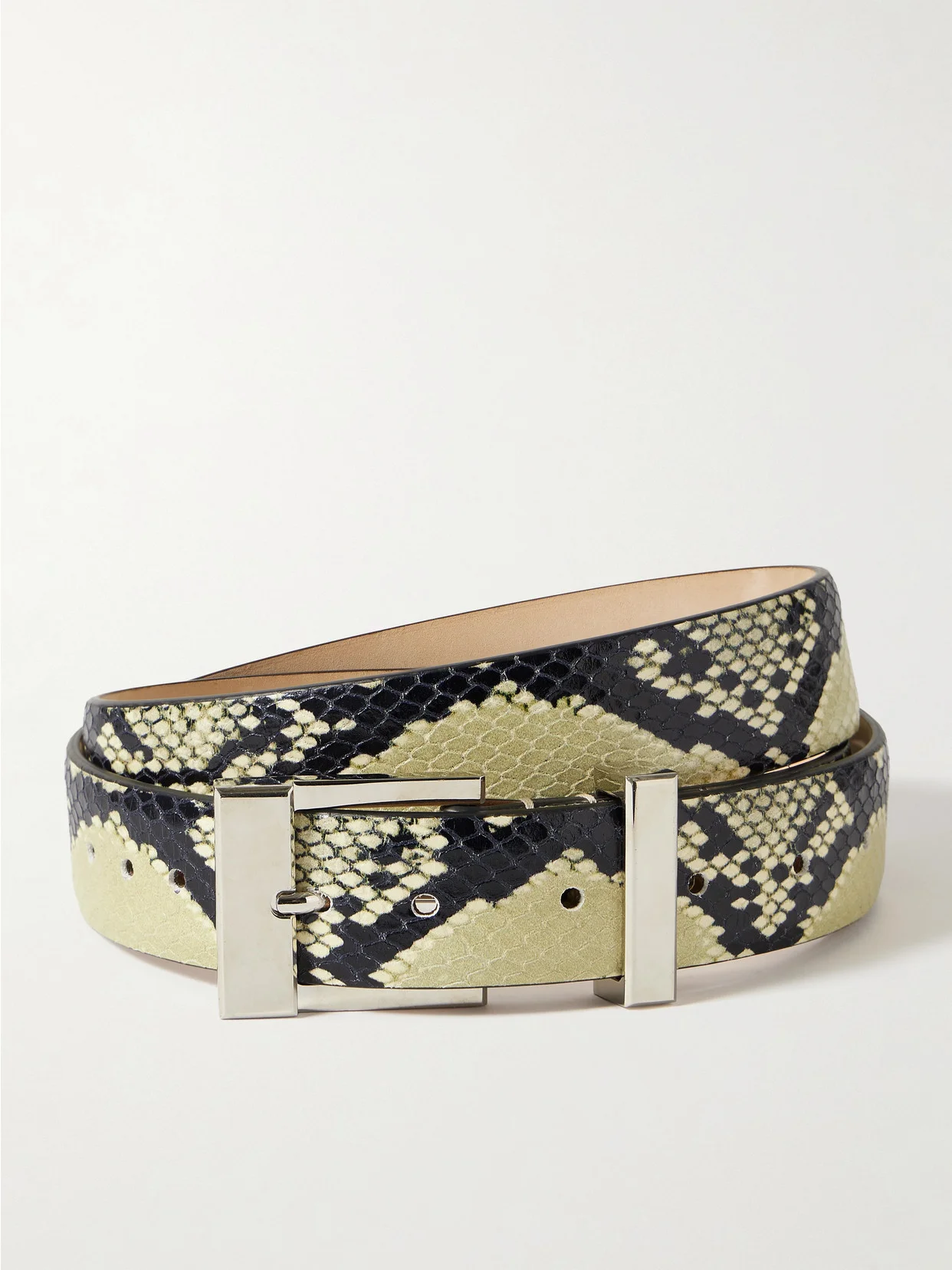 KHAITE's 'Manhattan' belt is a versatile, refined accessory that complements a variety of outfits. It's crafted from snake-effect leather and features a sleek gold-tone buckle. Thread yours through the loops of tailored pants or use it to cinch the waist of a dress.