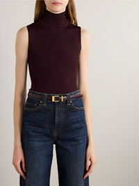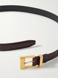 KHAITE's 'Manhattan' belt is a versatile, refined accessory that complements a variety of outfits. It's crafted from smooth burgundy leather and features a sleek gold-tone buckle. Thread yours through the loops of tailored pants or use it to cinch the waist of a dress. Size & Fit - Designed to be worn on the waist - Measurements can be found in the link below Details & Care - Burgundy leather (Calf) - Buckle fastening