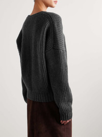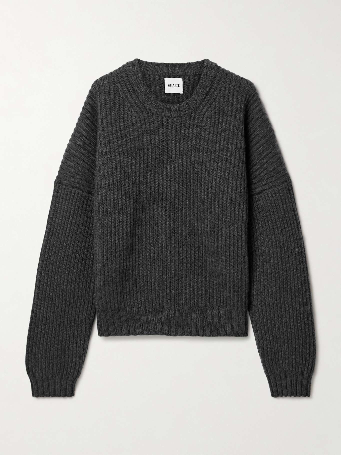 EDITORS'NOTES KHAITE's Fall '24 collection is comprised of foundational wardrobe pieces that will slot effortlessly into any wardrobe. This 'Manuela' sweater is knitted from soft cashmere with a tactile ribbed finish and has a loose shape emphasized by dramatically dropped shoulders. Style it with everything from your favorite jeans to midi skirts. SIZE & FIT - Fits true to size, take your normal size - Designed for a relaxed fit - Dropped shoulder sleeves - Chunky knit - Model is 175cm/ 5'9" and is wearing a size Small DETAILS & CARE - Charcoal cashmere - Slips on - 100% cashmere - Designer color: Storm