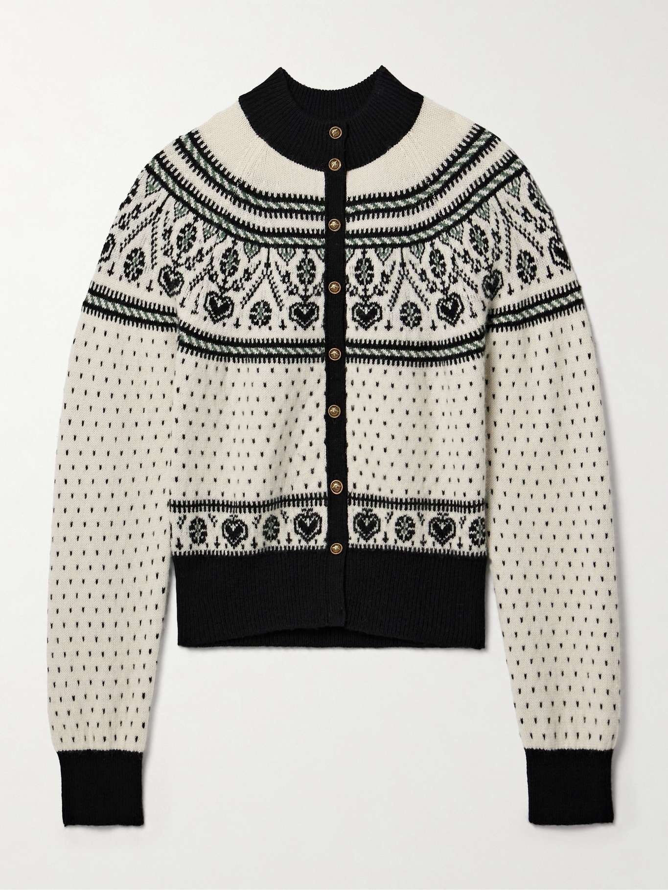 EDITORS'NOTES KHAITE's 'Marc' cardigan is intarsia-knitted with a take on Fair Isle that features small dots, flowers and hearts. Made from an exceptionally soft cashmere-blend, it has ribbed trims to temper the relaxed fit and decorative gold-tone buttons. Style it with a leather skirt or classic blue jeans. SIZE & FIT - Fits true to size, take your normal size - Designed for a relaxed fit - Mid-weight knit - Model is 180cm/ 5’11” and is wearing a size Small DETAILS & CARE - Ivory, black and army-green cashmere-blend - Button fastenings through front - 96% cashmere, 4% elastane