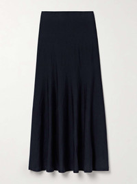 KHAITE's 'Mayu' skirt is knitted from wool-blend to fit slim at the waist before falling with a fullness that folds and moves so beautifully. Style yours with the brand's sweaters and knee boots. Size & Fit - Fits true to size, take your normal size - Midi-length, designed to be worn at the waist - Elasticated at the waist for a comfortable fit - Lightweight knit - S/M/L Details & Care - Midnight-blue wool-blend - Slips on - 99% wool, 1% polyamide