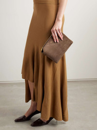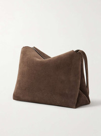 EDITORS'NOTES KHAITE's 'Lina' bag is designed in a sleek, understated shape that will never date, so you're sure to get plenty of use out of it. Made in Italy from smooth suede, it's stamped with the brand's moniker and has an adjustable crossbody strap that detaches, so you can also carry it as a clutch. There's plenty of room inside for your phone, keys, wallet and earbuds. SIZE & FIT This item’s measurements are: - Min. Strap Length: 100cm / 39.4in - Depth: 9cm / 3.5in - Max. Strap Length: 130cm / 51.2in - Height: 18cm / 7.1in - Width: 22cm / 8.7in DETAILS & CARE - Tan suede - Detachable adjustable shoulder strap - Unlined - Zip fastening along top - Designer color: Cedar