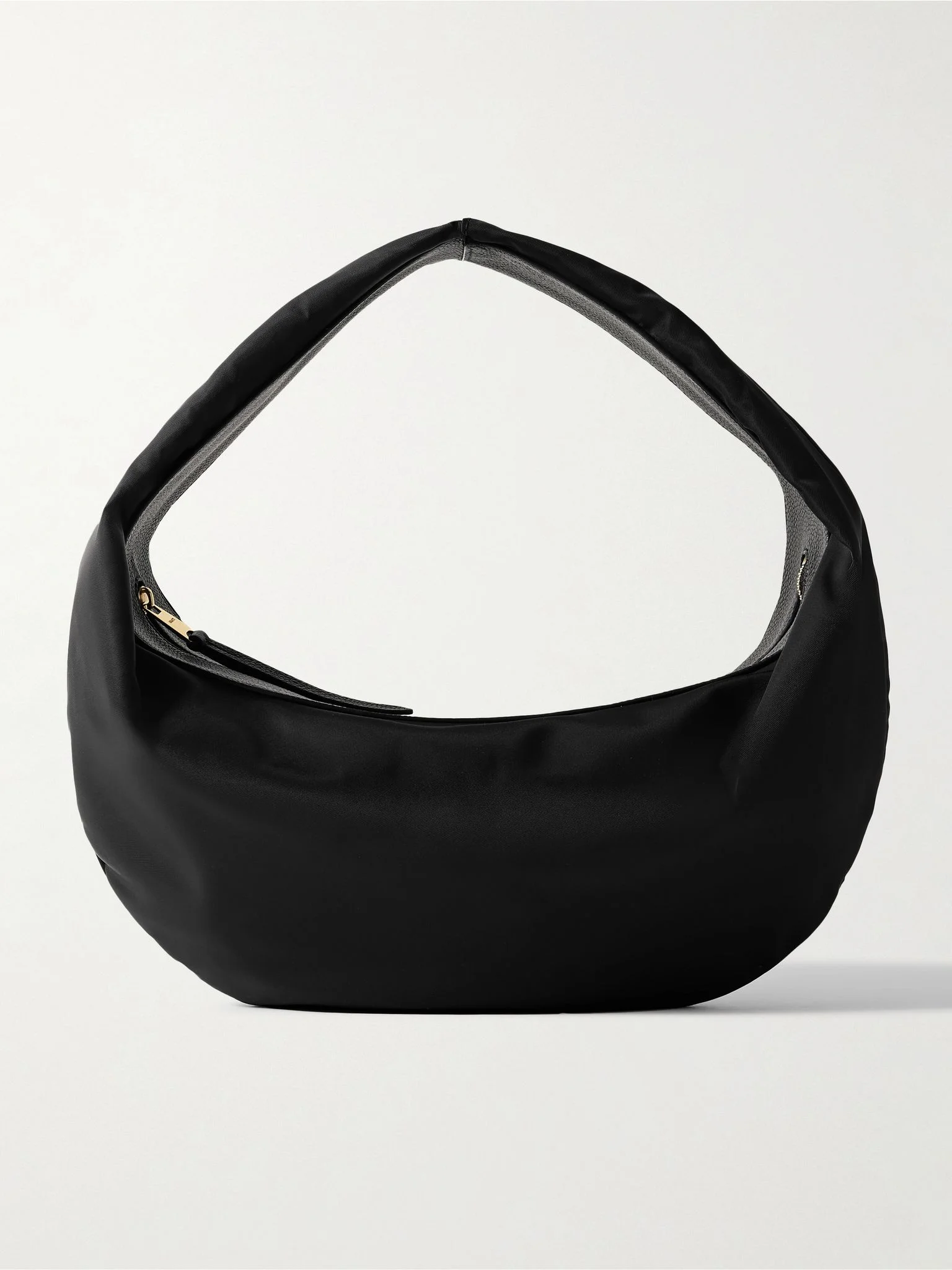 KHAITE's signature 'Olivia' bag is defined by its slouchy, circular shape which sits perfectly under your arm. This 'Sport' version is crafted from durable shell and traced with textured-leather. It's sized to fit your phone, wallet and sunglasses. Size & Fit o/s Details & Care - Black shell and textured-leather (Calf) - Top handle - Unlined - Zip fastening along top