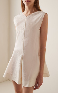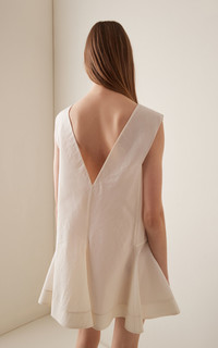 PRODUCT DETAILS - Sleeveless, slim fit, flounce hem, mini hem - Concealed zip fastening along back - Unlined - Composition: 53% Se, 47% Co - Color: Natural - Dry clean only - Spring/Summer '25