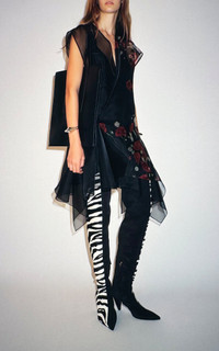 PRODUCT DETAILS - Slim fit, short sleeves, V-neck, uneven hem - Zipper fastening - Composition: Silk Organza - Color: Black / Red - Dry clean - Made In: Italy - Resort '26