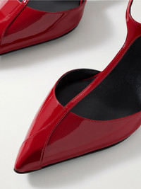 KHAITE's 'Mia' pumps are designed with slender straps that connect at the pointed toe and trace the arch before wrapping around the ankle. This version is made from patent-leather and has manageable 45mm heels. Details & Care - Heel measures approximately 45mm/ 2 inches - Claret patent-leather (Calf) - Buckle-fastening ankle strap - Designer color: Fire Red