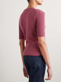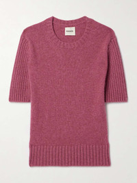 EDITORS'NOTES KHAITE uses exceptional fabrics and distinctive design elements to elevate its knitwear. This 'Mia' sweater is made from soft cashmere that's ribbed at the crewneck, short sleeves and hem for textural detail. It has a slim fit and lightweight handle. SIZE & FIT - Fits true to size, take your normal size - Designed for a slim fit - Lightweight knit - Model is 175cm/ 5'9" and is wearing a size Small DETAILS & CARE - Pink melange cashmere - Slips on - 100% cashmere - Designer color: Amaranth