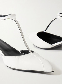 KHAITE's 'Mia' pumps are designed with slender straps that connect at the pointed toe and trace the arch before wrapping around the ankle. This version is made from white leather and has manageable 45mm heels. Details & Care - Heel measures approximately 45mm/ 2 inches - White leather (Calf) - Buckle-fastening ankle strap
