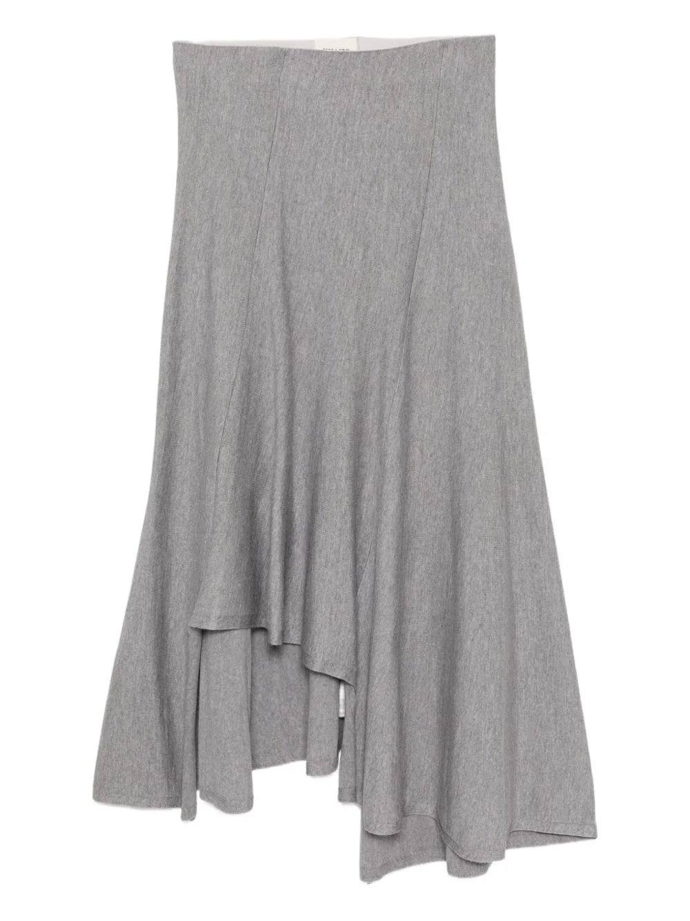 Miranda skirt Highlights - Grey - Elasticated waistband - Asymmetric hem Made in Italy Composition Wool 94%, Viscose 4%, Polyamide 1%, Polyester 1% SIZE & FIT Model measurements Height 5 ft 10 in(1.77 m) Bust/Chest 30.7 in(78 cm) Hips 35.82 in(91 cm) Waist 21.25 in(54 cm) Measurement HIPS 33.85 in(86 cm) LENGTH 38.58 in(98 cm) WAIST 25.98 in(66 cm) FittingInformation Designed with an asymmetric hem, this skirt is intended to be worn high on the waist The elasticated waist allows for a comfortable fit Made with a midweight knit, this piece offers some stretch Washing instructions Dry Clean Only