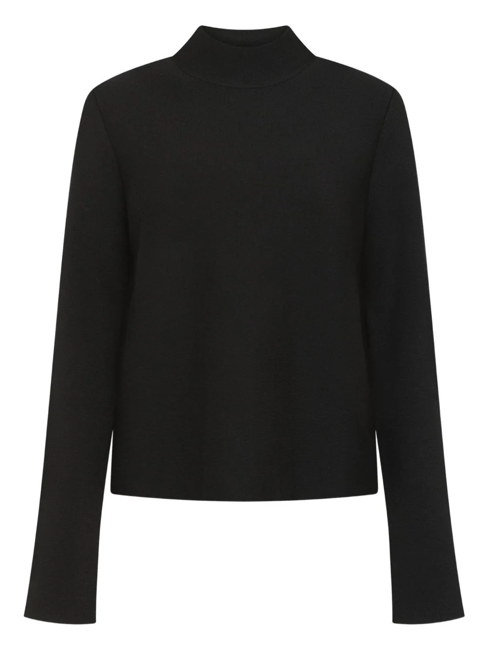 high-neck wool sweater Highlights - Black - High neck - Long sleeves - Wide cuffs - Boxy shape - Wool fabric Made in Italy Composition Wool 96%, Polyamide 4% Washing instructions Read Manufacturer Guidelines