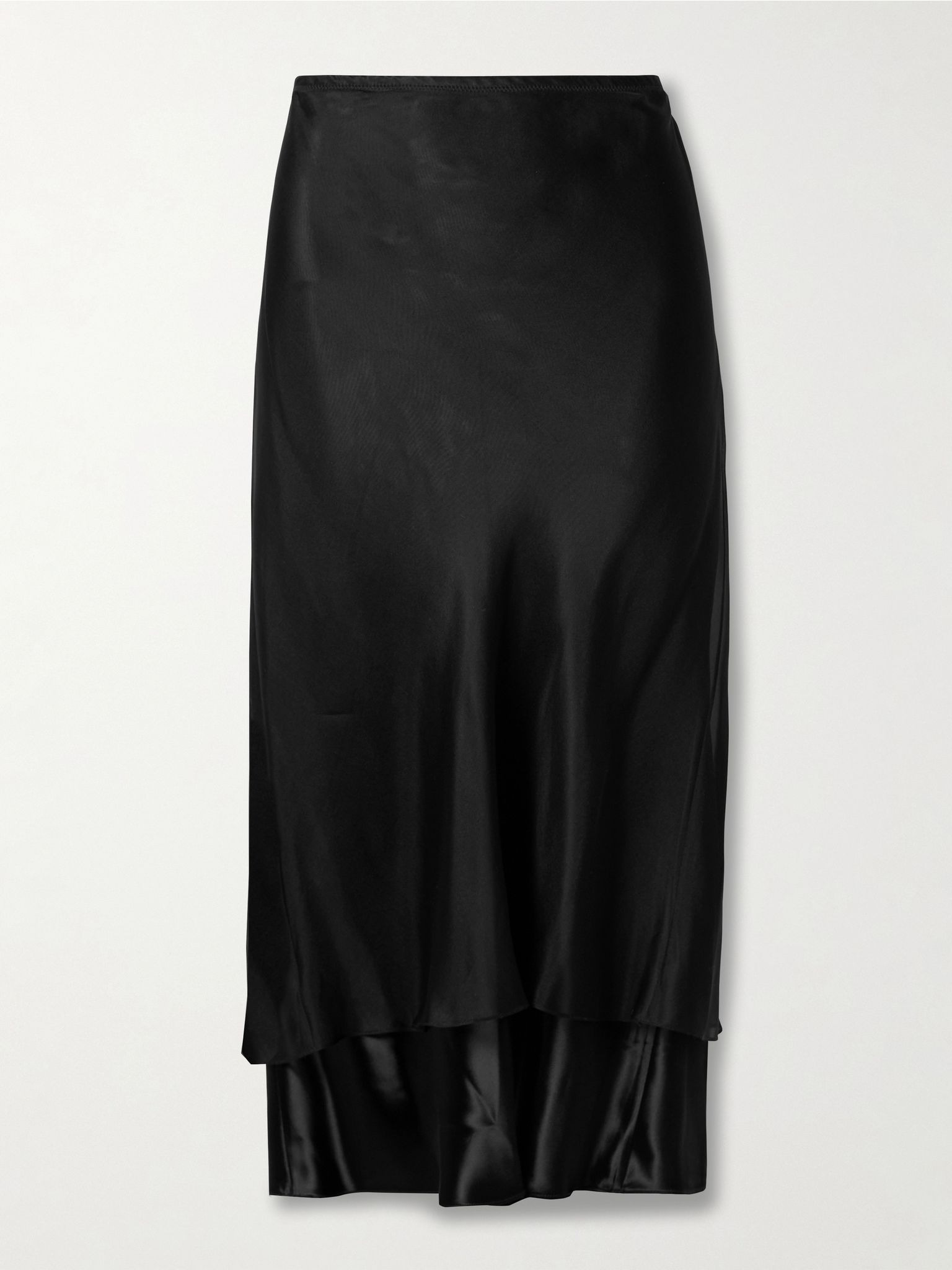 KHAITE's Spring '25 collection is a masterclass in classic yet contemporary design. This 'Monina' skirt is cut from glossy satin with a sheer organza overlay for a touch of contrast. Size & Fit - Fits true to size, take your normal size - Midi-length, designed to be worn at the hip - Elasticated at the waist for a flexible fit - Lightweight, non-stretchy fabric - Model is 180cm/ 5’11” and is wearing a US 2 Details & Care - Black satin and organza - Slips on - 100% viscose