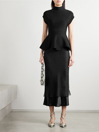 Monina layered satin and organza midi skirt Black