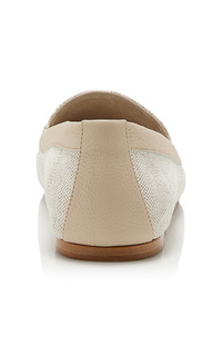 PRODUCT DETAILS - Flat loafer silhouette, small grain calfskin leather and canvas body, round toe - Slip on - Composition: 50% calfskin, 50% canvas (55% cotton, 45% polyurethane) - Made in Italy