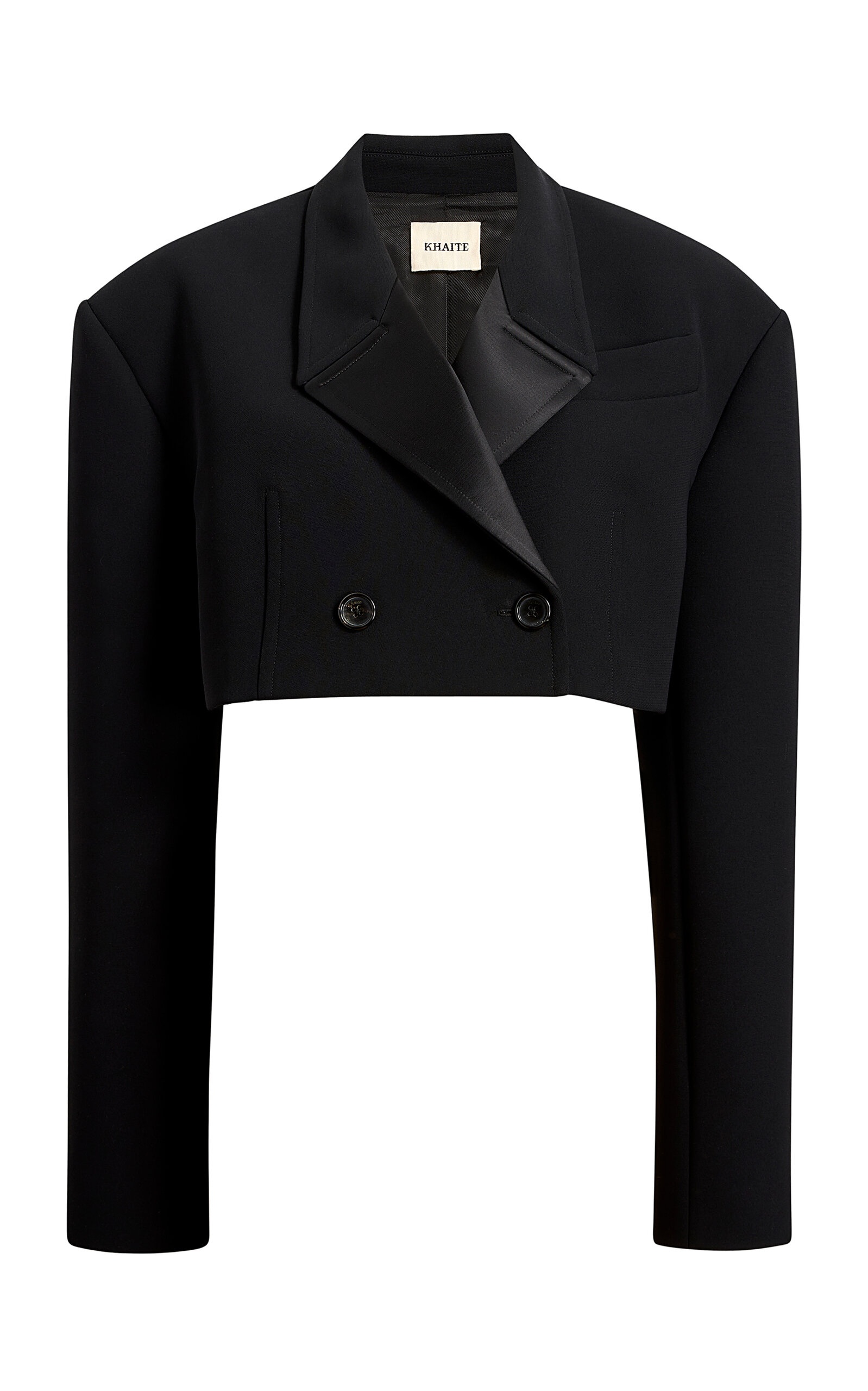 PRODUCT DETAILS - Cropped hem, boxy fit, notched lapels* Features detachable tank lining - Button fastening through front - Lined - Composition: 100% Polyester - Color: Black - Dry clean only - Spring/Summer '25