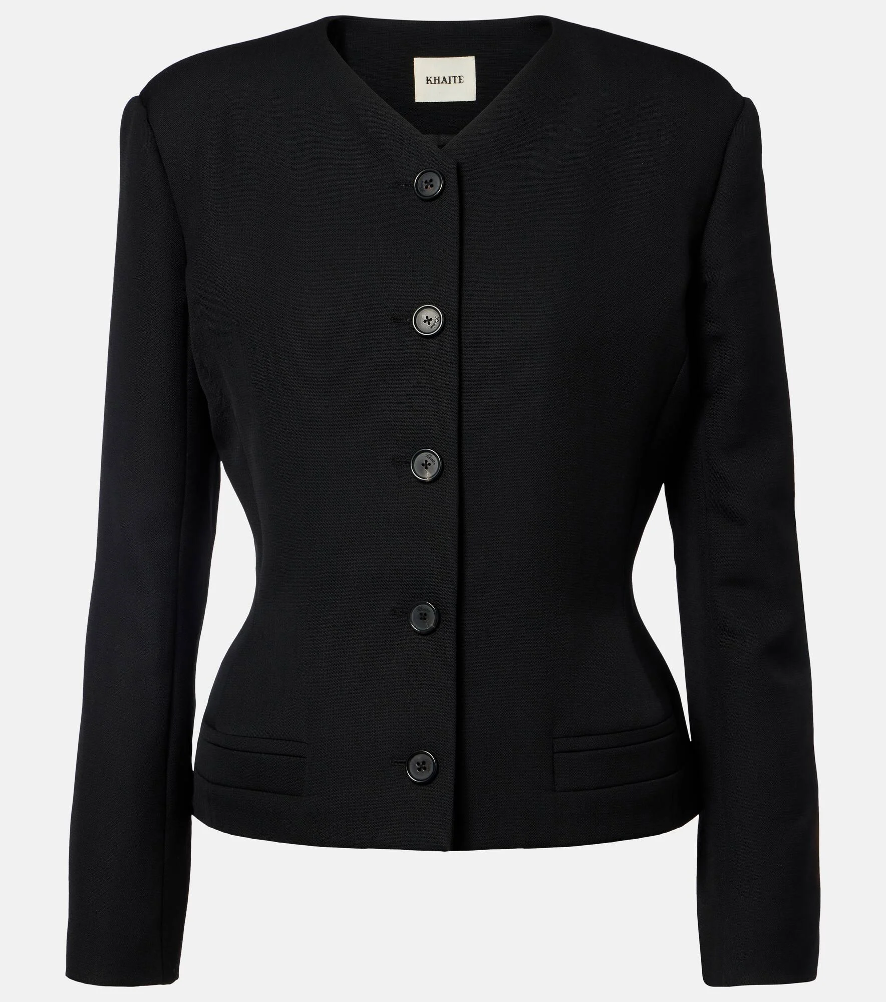 Khaite's minimalist designs exude modern sophistication and effortless elegance. Crafted from wool, the Nara jacket features buttoned front closure, faux pockets, and shoulder pads for added structure. Product Details - Material: 100% wool - Care instructions: dry clean - Made in the USA - Designer color name: Black - Item color: black - Closure: buttoned front - Shoulder pads - Cuff: four buttons - Pockets: faux pockets - Item number: P01107142 Size & Fit - True to size - Shoulder pad inserts - Cinched waist - Non-stretchy fabric - Falls to the hip - Height of model is 178cm-70" and wears a size US 4
