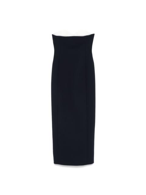 Yael maxi dress Highlights - Navy blue - Concealed rear hook and zip fastening - Moulded cup - Rear slit - Straight hem Made in United States Composition Outer: Polyester 100%, Cotton 68%, Viscose 32% Lining: Silk 100%, Polyamide 90%, Elastane 10% SIZE & FIT Model measurements Height 5 ft 10 in(1.79 m) Bust/Chest 35.43 in(90 cm) Hips 35.03 in(89 cm) Waist 25.19 in(64 cm) FittingInformation Designed for a close fit throughout The internal bodice offers support and shape Made from a midweight fabric