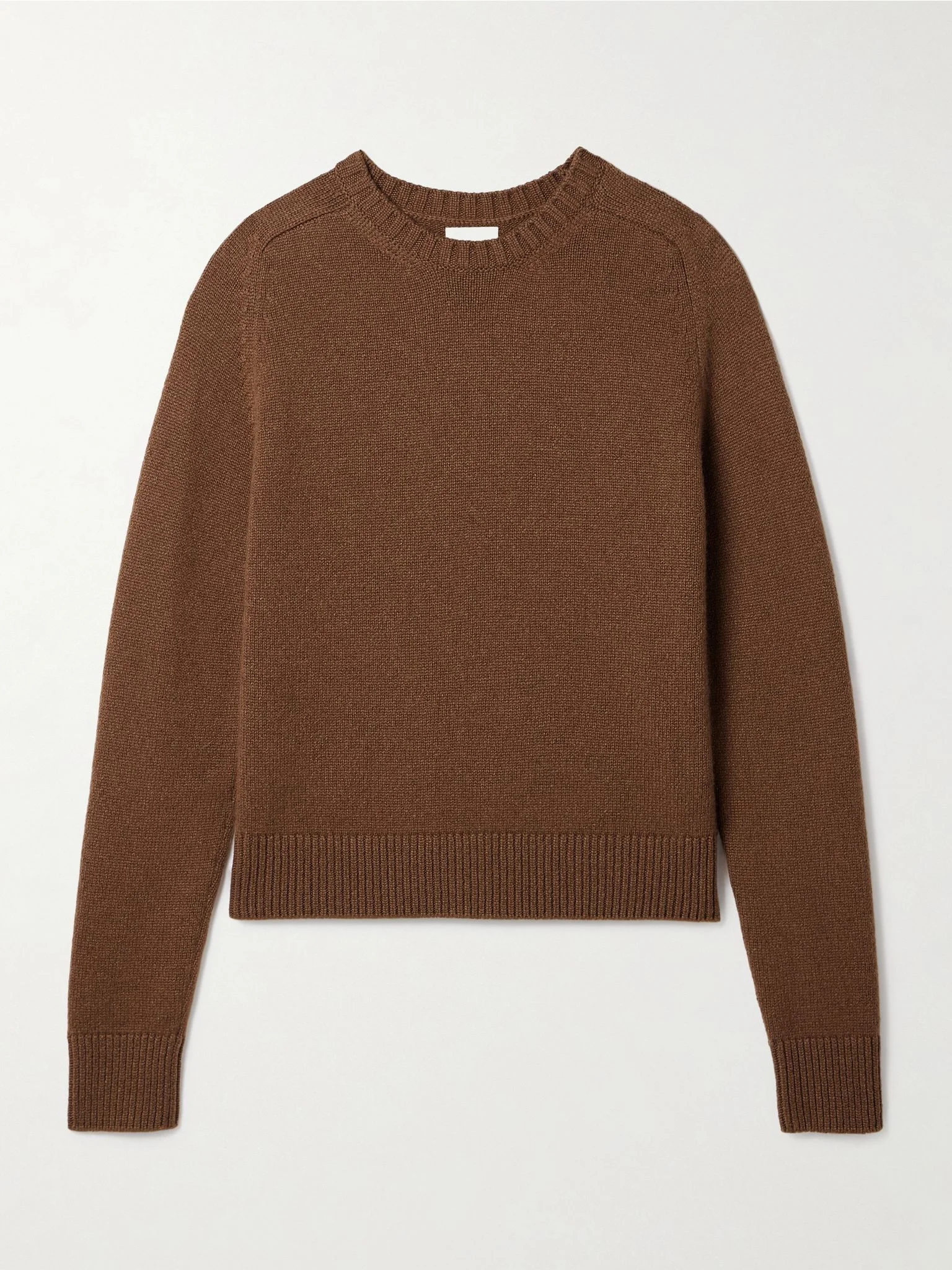 Every KHAITE collection builds upon the previous one, blending luxurious materials with understated design. This 'Nera' sweater is knitted from soft cashmere and defined by ribbed trims. Size & Fit - Fits true to size, take your normal size - Designed for a loose fit - Lightweight knit - Model is 180cm/ 5’11” and is wearing a size Small Details & Care - Brown cashmere - Slips on - 100% cashmere - Designer color: Maple