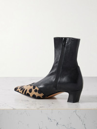 KHAITE''s 'Nevada' ankle boots are inspired by classic cowboy styles. They've been crafted in Italy from supple leather with leopard-print calf hair accents and slanted heels that offer 40mm of lift. Wear them with midi dresses or slim jeans. Details & Care - Heel measures approximately 40mm/ 1.5 inches - Black leather (Lamb), leopard-print calf hair - Zip fastening along side