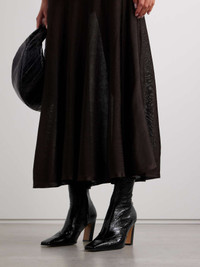 EDITORS'NOTES KHAITE's 'Nevada' ankle boots are inspired by classic cowboy styles. They've been crafted in Italy from supple crinkled-leather and have slanted heels that offer 85mm of lift. Wear them with midi dresses or slim jeans. SIZE & FIT - Fits true to size, take your normal size - Italian sizing DETAILS & CARE - Heel measures approximately 85mm/ 3.5 inches - Black crinkled-leather (Calf) - Zip fastening along side
