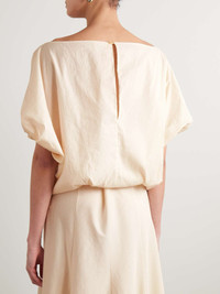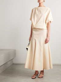 EDITORS'NOTES KHAITE's Resort '25 collection is filled with simple, sculptural designs that are endlessly chic. Made from silk and cotton-blend twill, this 'Niles' top is is gently pleated and draped throughout and has a cropped, elasticated hem that creates a voluminous shape. SIZE & FIT - Fits true to size, take your normal size - Designed for a relaxed fit - Elasticated at the hem - Lightweight, non-stretchy fabric - Model is 175cm/ 5'9" and is wearing a US 2 DETAILS & CARE - Ecru silk and cotton-blend twill - Button-fastening keyhole at back - 53% silk, 47% cotton; buttons: 100% horn (Buffalo) - Designer color: Natural