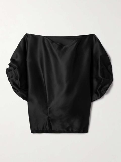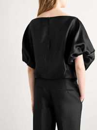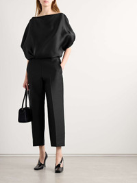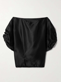 EDITORS'NOTES KHAITE's Resort '25 collection is filled with simple, sculptural designs that are endlessly chic. Made from silk-faille, this 'Niles' top is gently pleated and draped throughout and has a cropped, elasticated hem that creates a voluminous shape. SIZE & FIT - Fits true to size, take your normal size - Designed for a loose fit - Elasticated at the hem - Lightweight, non-stretchy fabric - Model is 180cm/ 5'11" and is wearing a size Small DETAILS & CARE - Black silk-faille - Button-fastening keyhole at back - 100% silk