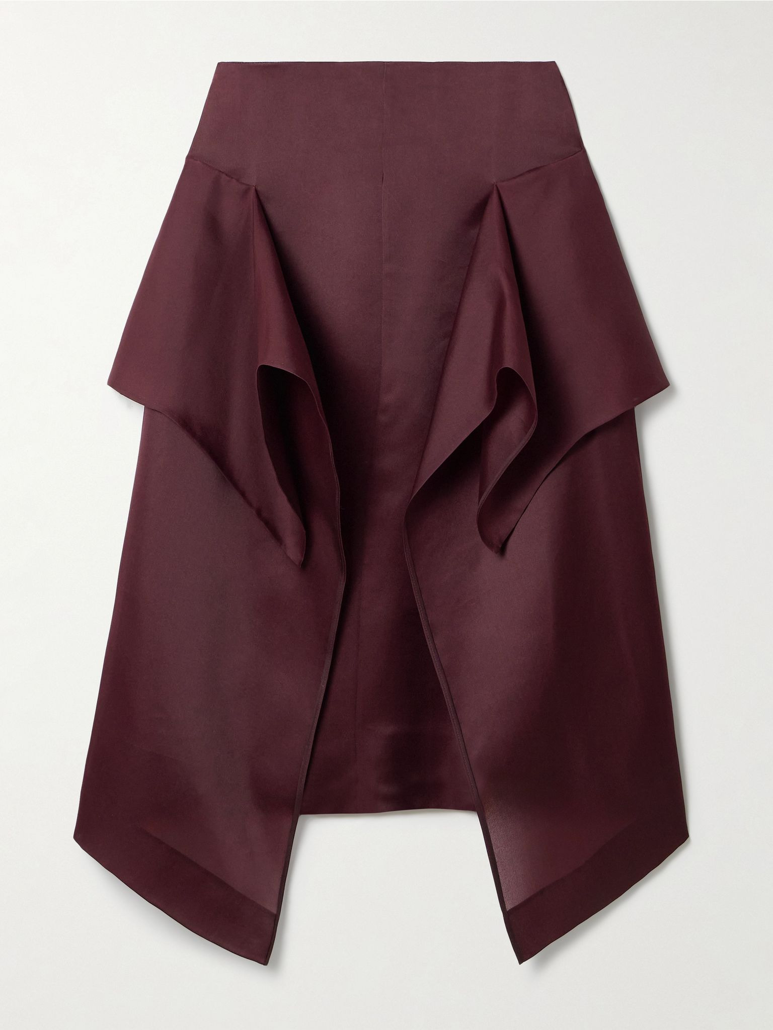 Nina asymmetric draped silk-organza midi skirt Burgundy