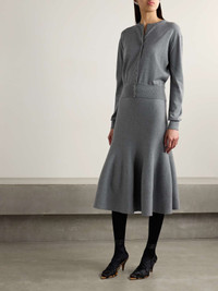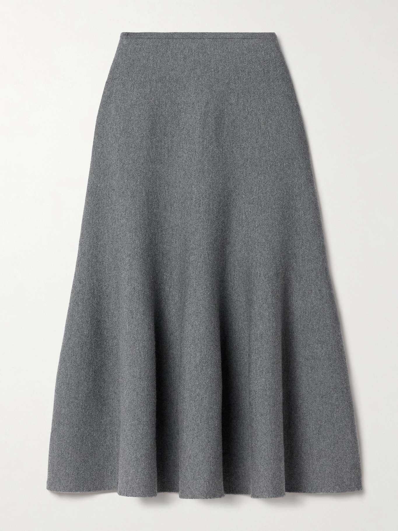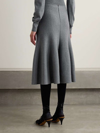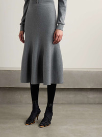 KHAITE is an expert at perfecting the shape and fabrication of each design. This 'Odil' skirt is made from an anthracite wool-blend that fits comfortably slim through the hips before flaring out to a floaty midi hem. Wears yours with a tonal sweater or collared shirt. Size & Fit - Fits true to size, take your normal size - Midi-length, designed to be worn at the waist - Mid-weight knit - Model is 180cm/ 5’11” and is wearing a size Small Details & Care - Anthracite wool-blend - Concealed hook and zip fastening at back - 96% wool, 4% polyamide - Designer color: Sterling