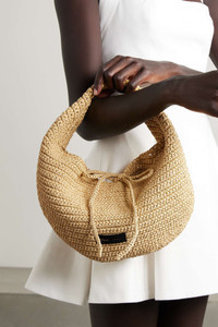 EDITORS'NOTES EXCLUSIVE AT NET-A-PORTER. Khaite's 'Olivia' bag is designed in a distinctive circular shape. Made from raffia in an unstructured style, it has just enough space to store your phone, cardholder and keys. Carry it in the crook of your arm or over the shoulder. SIZE & FIT This item’s measurements are: - Handle Drop: 110cm / 43.3in - Height: 20cm / 7.9in - Width: 35cm / 13.8in - Depth: 11cm / 4.3in DETAILS & CARE - Sand raffia - Top handle - Ties at open top - Designer color: Natural - Comes with dust bag - Weighs approximately 1.1lbs/ 0.5kg