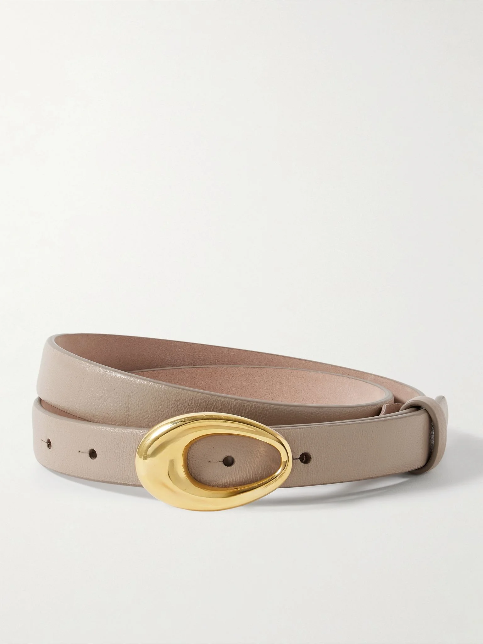 KHAITE's 'Olivia' belt will add a polished finishing touch to your outfits. It's made from supple leather and fastens with a sculptural gold-tone buckle. Size & Fit - Designed to be worn on the hips or waist - Measurements can be found in the link below Details & Care - Beige leather (Calf) - Buckle fastening - Designer color: Nude