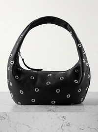 Olivia medium embellished textured-leather tote Black
