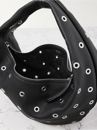 KHAITE's 'Olivia' tote is embellished with polished silver-tone grommets. Made in Italy from black textured-leather, it has a slouchy, circular shape that's perfect for nestling in the crook of your arm or wearing over your shoulder. It's sized to fit your phone, a continental wallet and keys. Details & Care - Black textured-leather (Calf) - Top handle - Internal slip pocket - Fully lined - Zip fastening along top