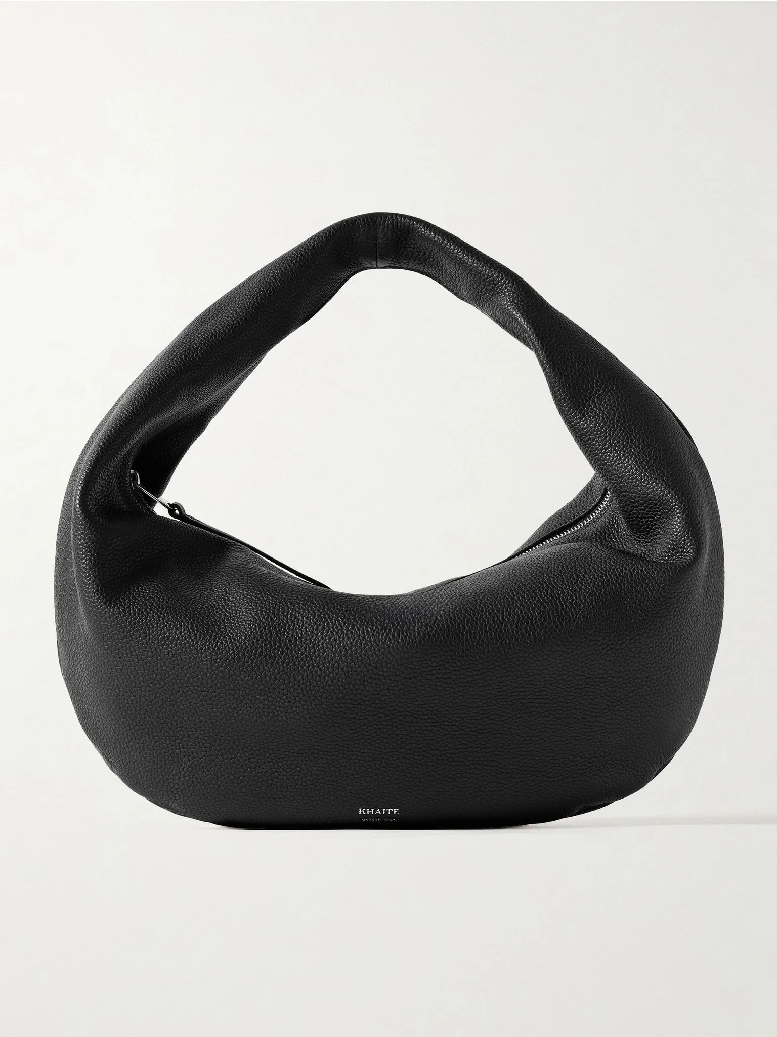 KHAITE's signature 'Olivia' bag is defined by its slouchy, circular shape which sits perfectly under your arm. This 'Sport' version is crafted from smooth leather and is sized to fit your phone, wallet and sunglasses. Details & Care - Black leather (Calf) - Top handle - Unlined - Zip fastening along top